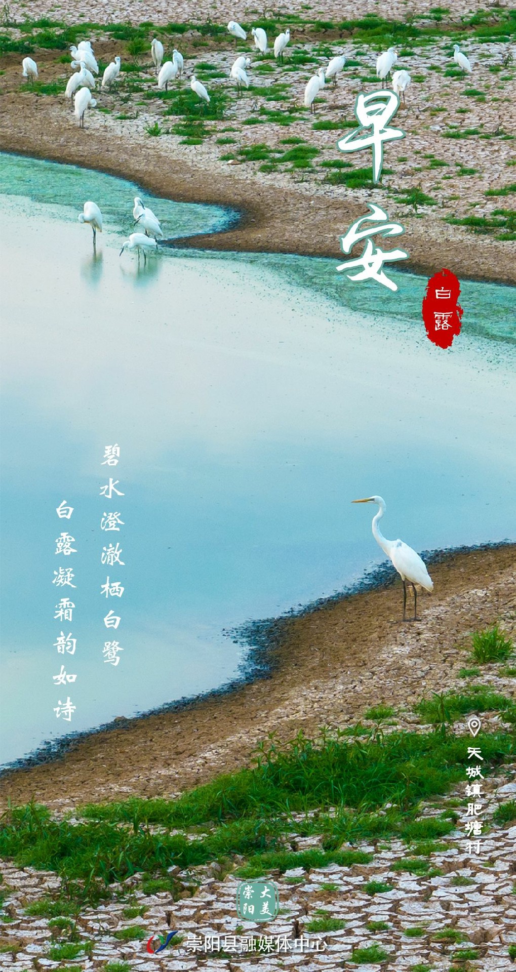 早安·大美崇阳——碧水澄澈栖白鹭,白露凝霜韵如诗