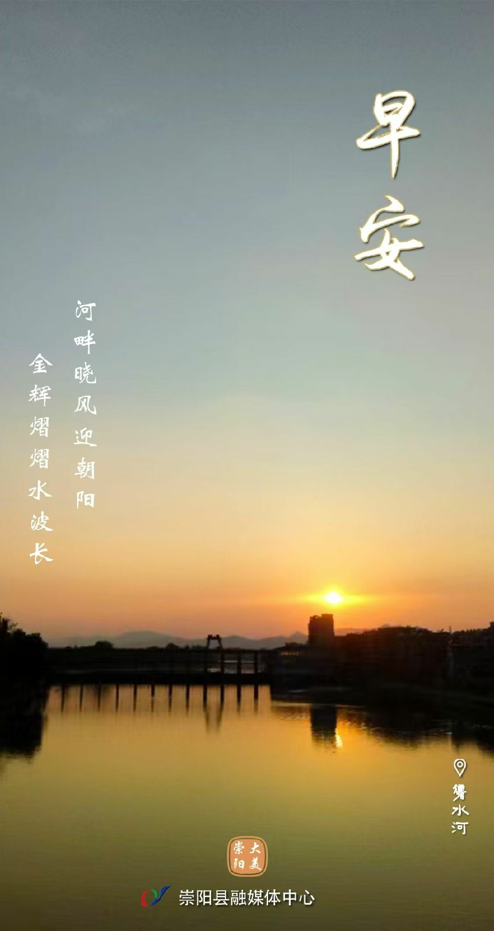早安·大美崇阳——河畔晓风迎朝阳,金辉熠熠水波长