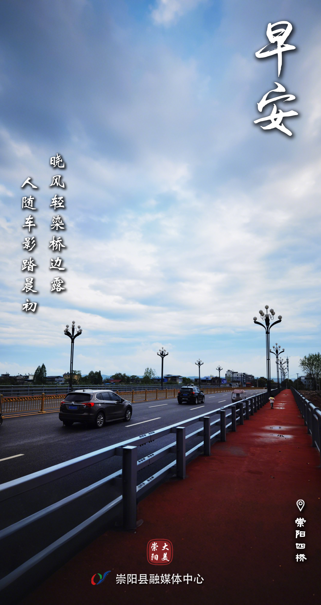 早安·大美崇阳——晓风轻染桥边露,人随车影踏晨初