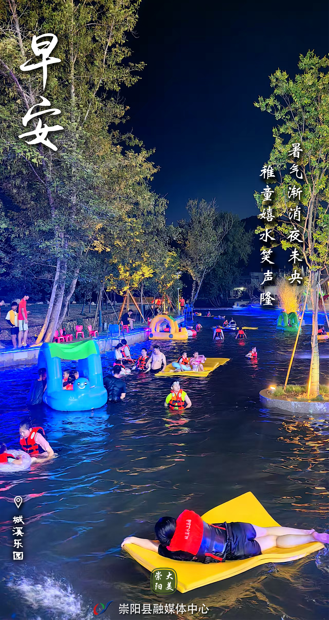 早安·大美崇阳——暑气渐消夜未央,稚童戏水笑声隆