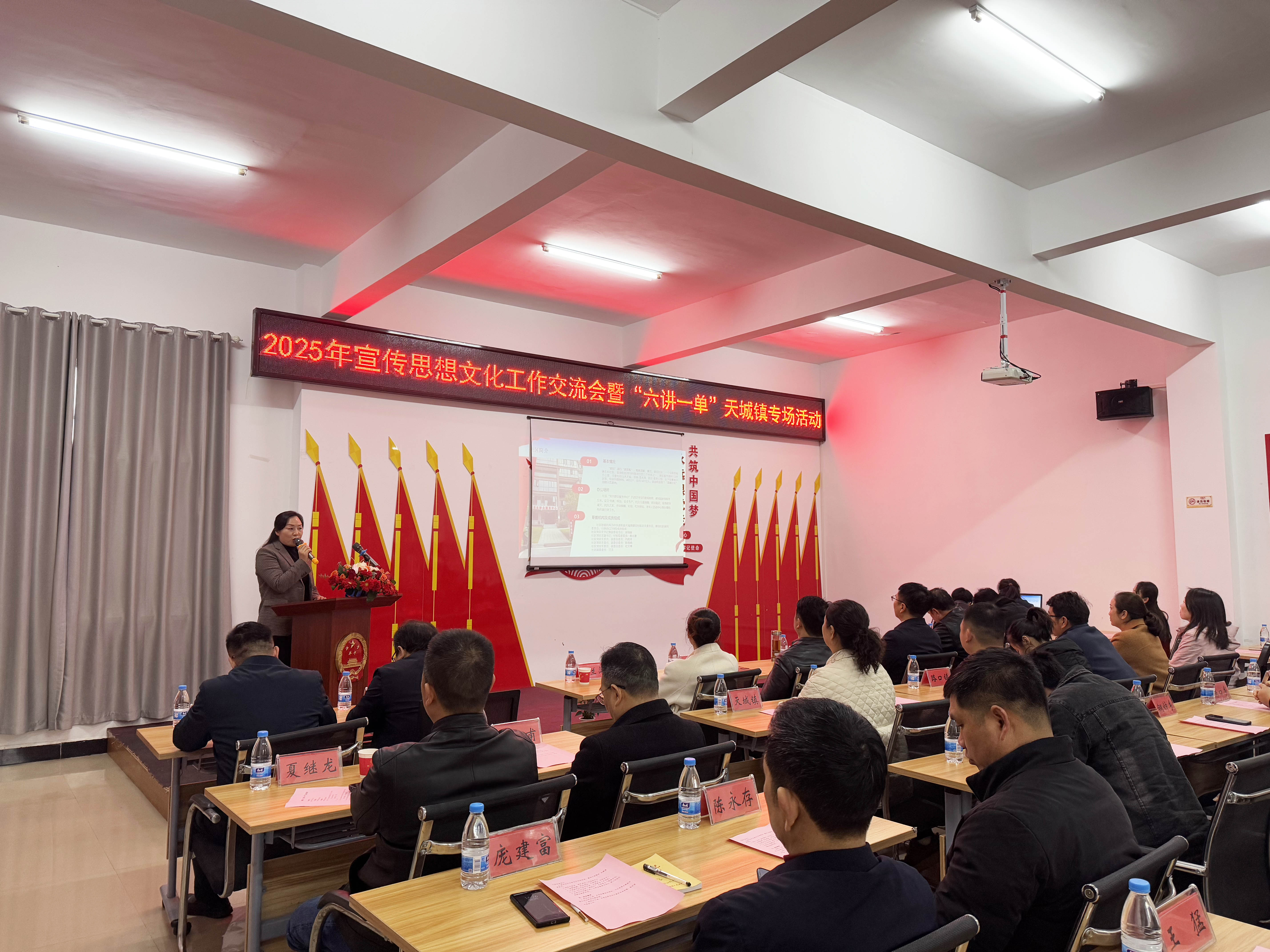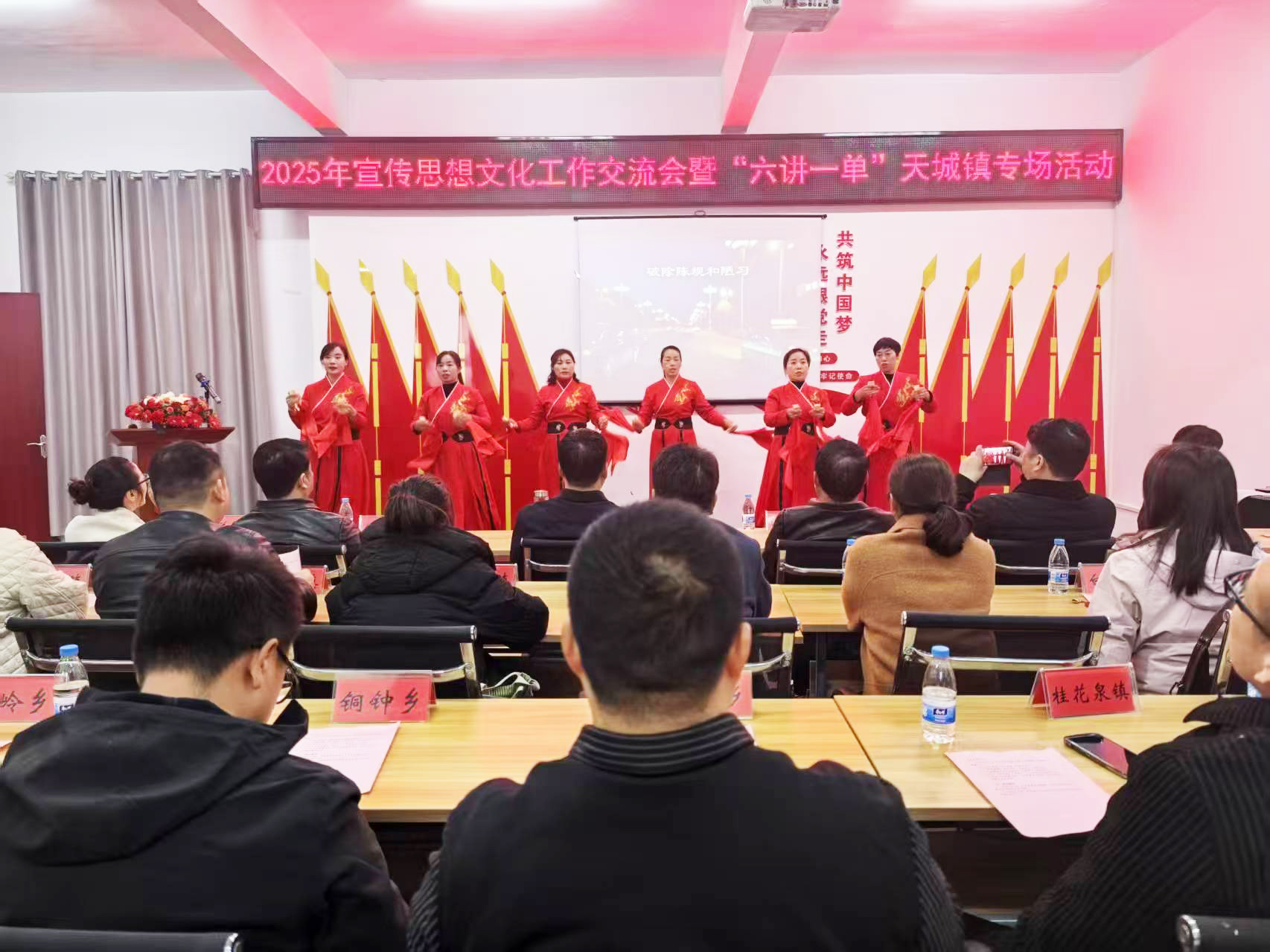 在史家渡村文化礼堂,青年干部黄爽爽以《血色黎明》深情讲述崇阳县第一位共产党员沈昌亚的坚定信念和伟大情怀;碧田社区书记吴细丽倡议“廉洁从我做起”;群众代表自创快板《新风颂》诙谐演绎移风易俗新风尚;“南鄂楷模”程宜清分享了37年扎根泥土、服务群众的感人故事,台下群众湿了眼眶;天城商会十年发展历程振奋人心,赢得全场热烈掌声;反诈小品《钱袋保卫战》用方言包袱点燃全场气氛;天城镇党委书记徐鹏志结合全国两会精神阐述了天城发展规划。