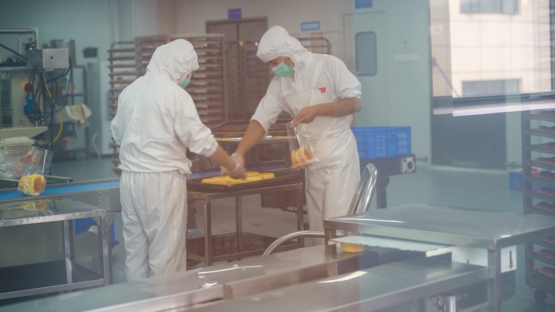 工厂内,工人们各司其职,和面、成型、烘烤、包装等各条生产线有序运转,一个个精致可口的食品在流水线上快速成型,即将发往各地市场。