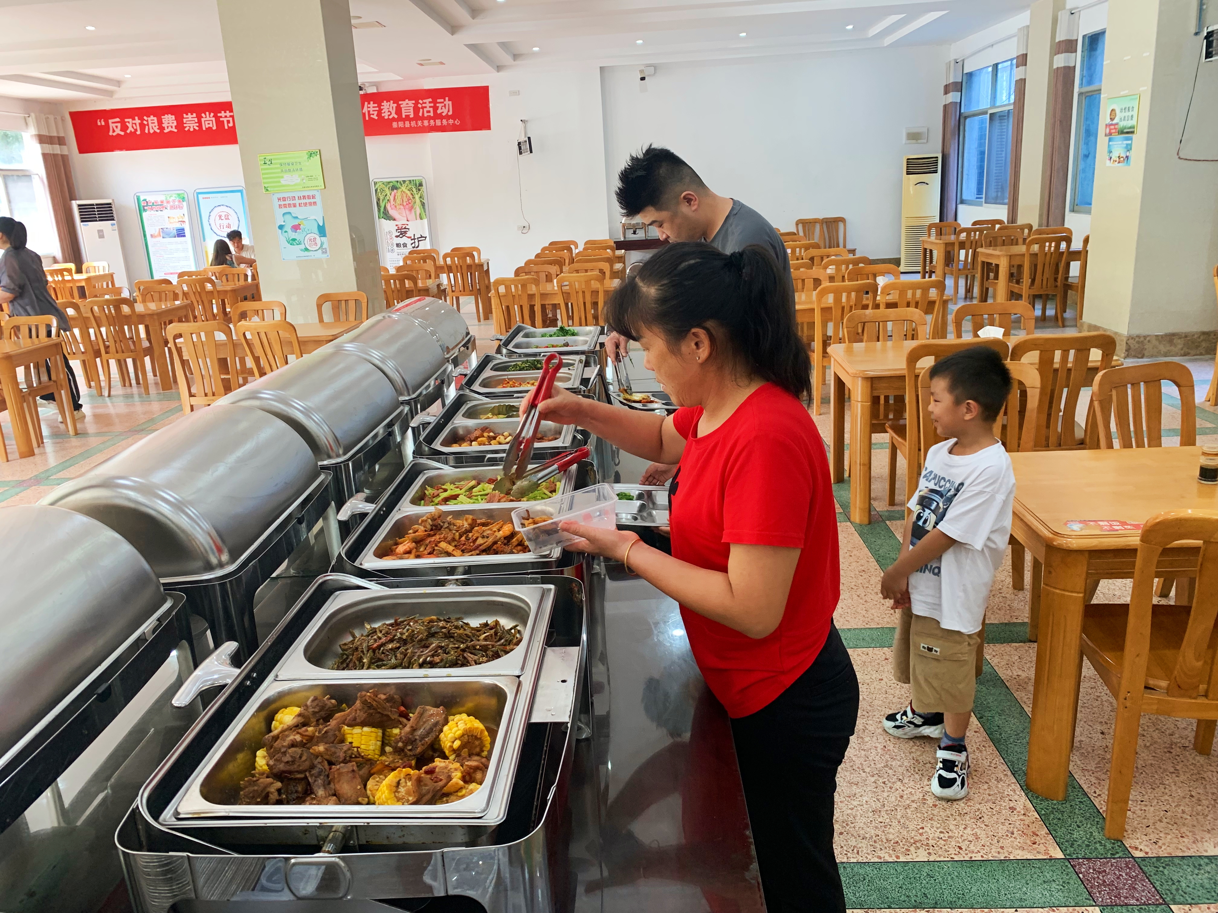 10月1日至8日,崇阳县政府机关食堂首次面向游客开放,推出每两1.8元的自助式平价餐,荤素搭配、按两计价,日均供应近20道本地菜品,吸引不少游客“打卡”就餐。