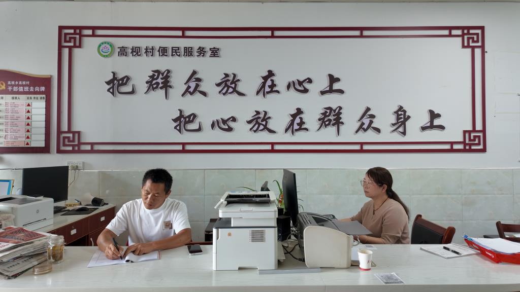 在高枧村便民服务室,村干部们熟练地为前来咨询和缴费的村民提供一站式服务。村民宋锦刚办理完缴费手续,她告诉记者“前两天在微信群里就看到通知了,村干部也来家里讲过,今天特意来交我们夫妻两人的费用,非常方便!”