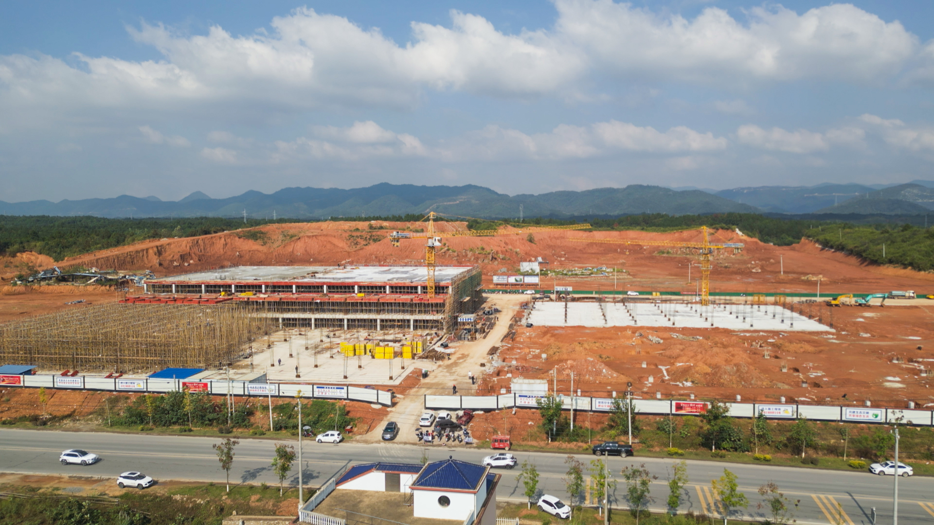10月23日,记者走进崇阳县综合物流园及配套设施建设项目(二期)看到,塔吊林立、机器轰鸣,大型机械有序作业,头戴安全帽的工人各司其职,正在2号仓工地进行紧张的基础施工,共同奏响项目建设的“奋进曲”。