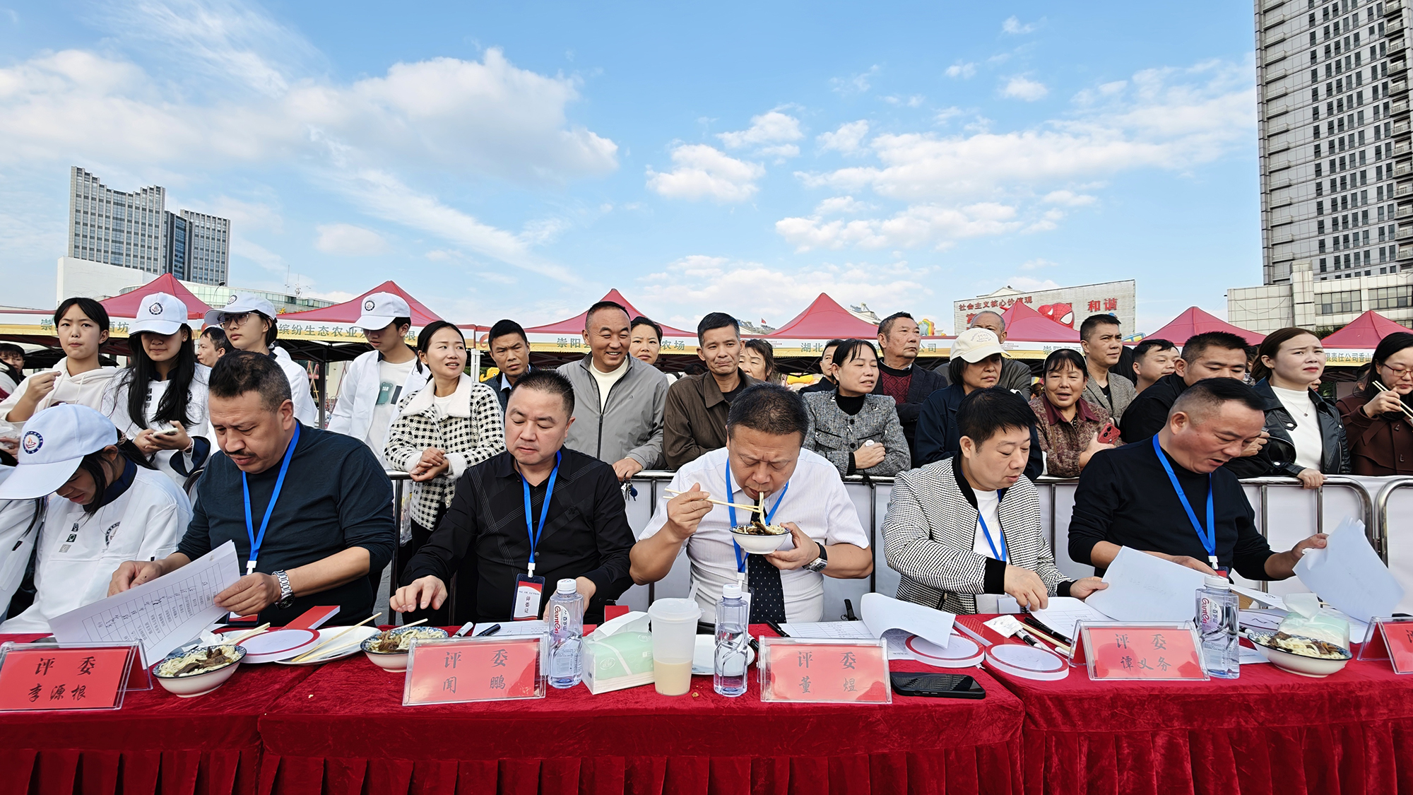 活动现场,大集广场化身飘香的开放式厨房。参赛选手们各展绝技,需在25分钟内完成菜品制作,评委则围绕“色、香、味、形、本土特色”五大维度进行专业评判。油泼面热油浇淋的滋滋声、炒糯米粑粑的焦香四处弥漫,观众既能近距离观摩美食制作过程,还能聆听选手讲解菜品特色、历史渊源与创新亮点,部分菜品完成后更开放试吃互动,让美食体验直观又鲜活。