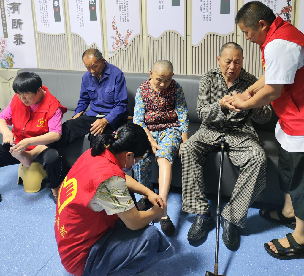 在青山镇卫生院康养活动室,卫生院的医疗志愿服务队细致地为老人修剪指甲,动作轻柔耐心,“您平时要注意多走动”“这个季节记得添衣保暖”,一句句细致的叮嘱,把健康知识和关怀送到老人身边,让老人们在节日里多了一份安心与暖意。