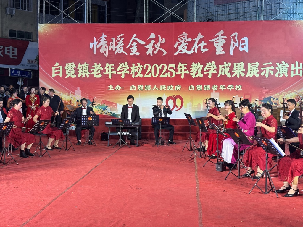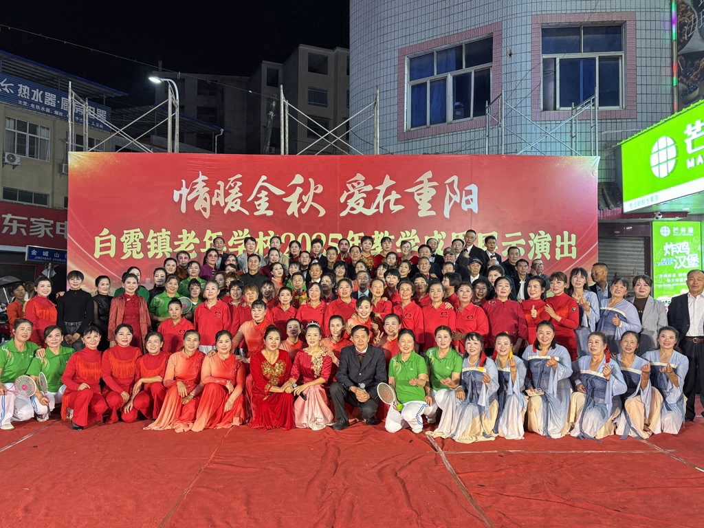 10月28日晚,崇阳县白霓镇举办“情暖金秋 爱在重阳”暨白霓镇老年学校2025年教学成果展活动,白霓镇老年学校学员及社区居民等300余人齐聚一堂,以乐传情,以艺抒怀,共庆重阳佳节。