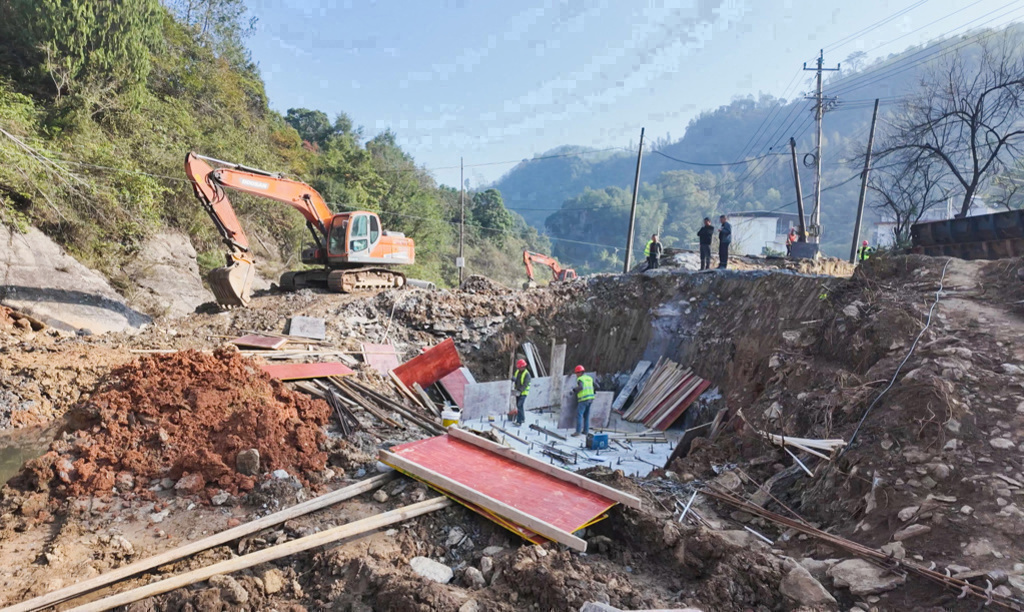 11月5日,在天城镇桃红村邹家桥施工现场,机械轰鸣,焊花飞溅,工人们忙碌而有序地穿梭其间。技术人员全神贯注地监测着桥墩的垂直度,工人们在进行钢筋绑扎作业,每一个节点都力求牢固可靠。这座采用2孔13米现浇普通钢筋混凝土简支空心板结构的新桥,已初具雏形,它跨越的不仅是一条沟壑,更是村民多年来的期盼。