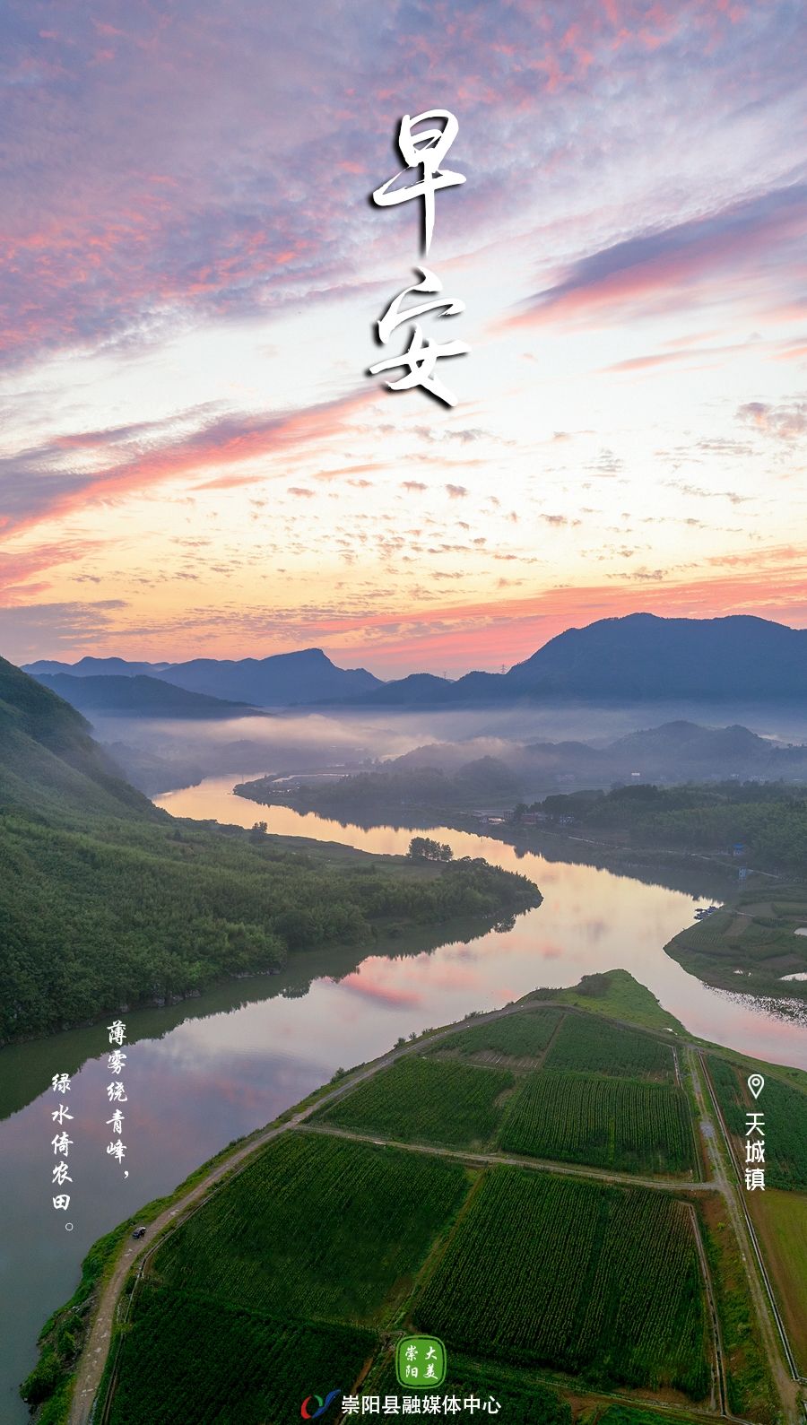 早安·大美崇阳——薄雾绕青峰,绿水倚农田
