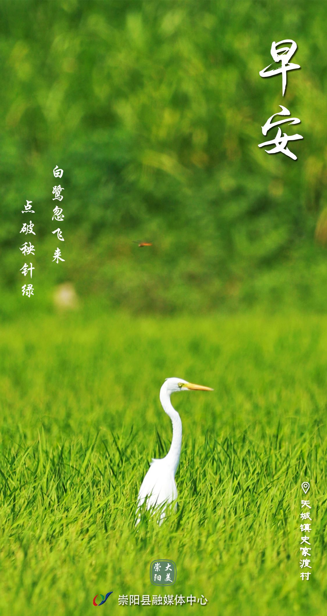 早安·大美崇阳——白鹭忽飞来,点破秧针绿