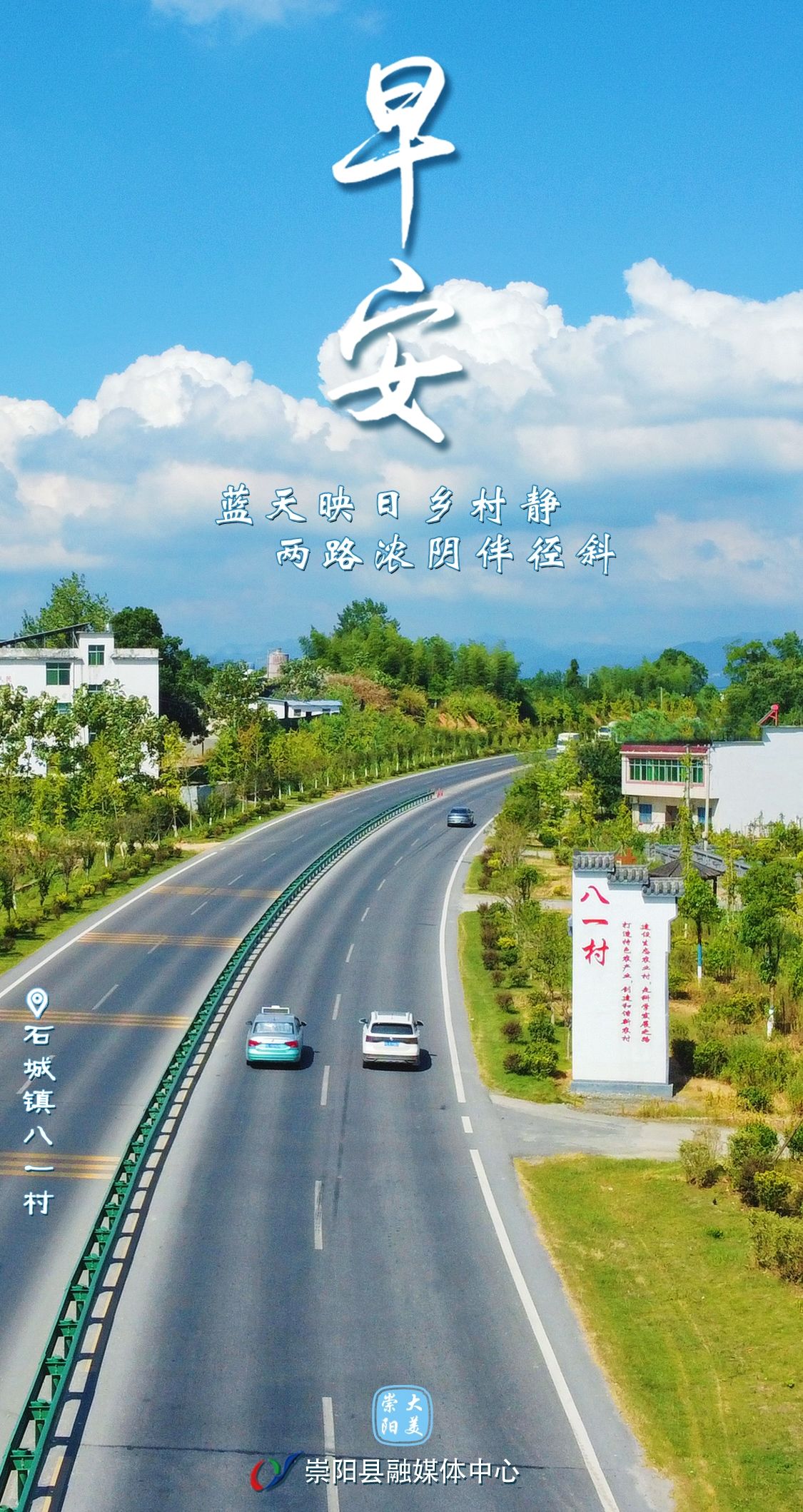 早安·大美崇阳——蓝天映日乡村静,两路浓阴伴径斜