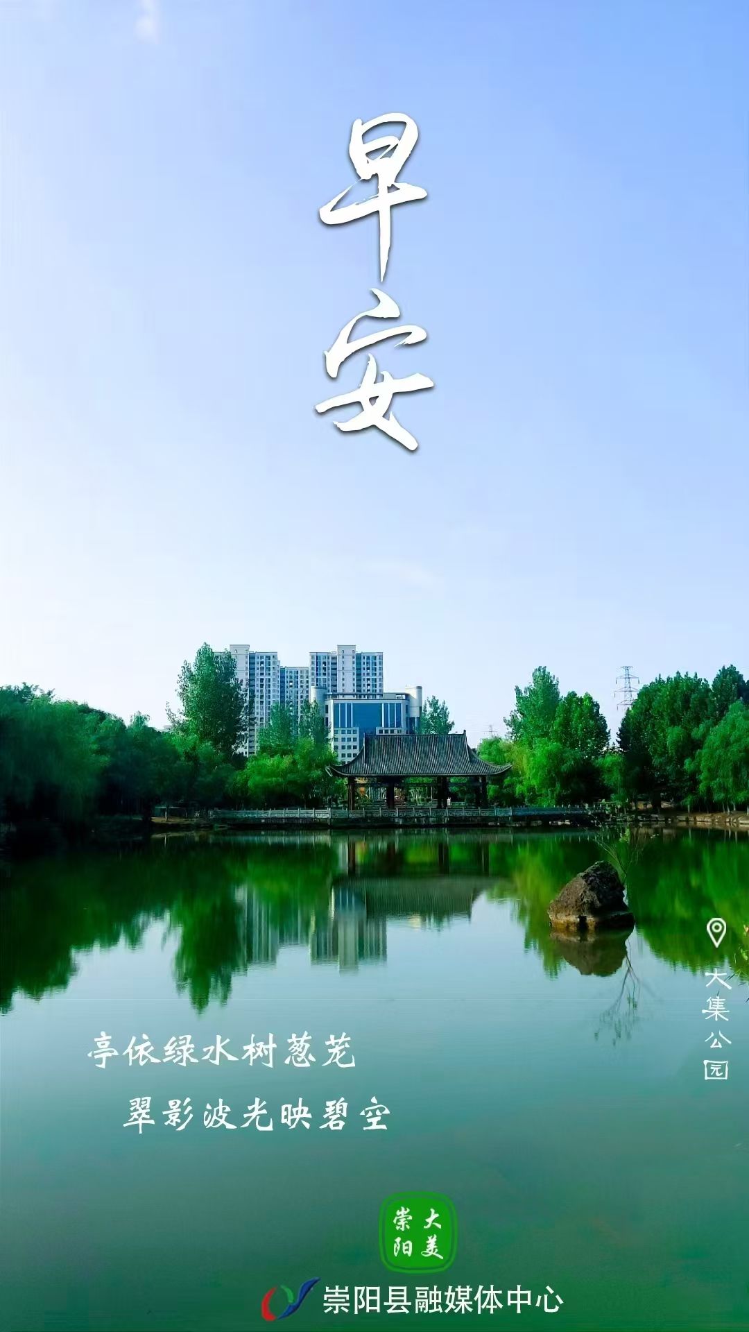 早安·大美崇阳——亭依绿水树葱茏,翠影波光映碧空