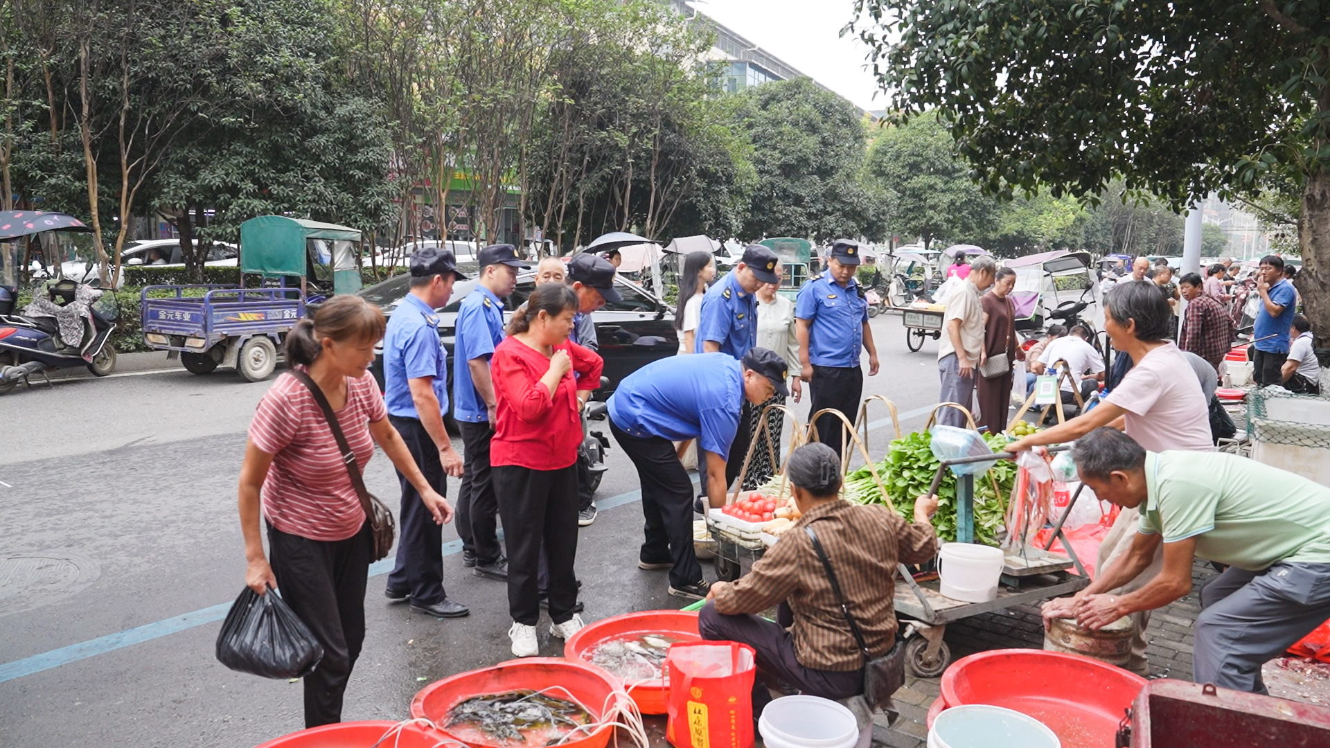作为市民出行、采购的重要区域,崇阳大市场在双节期间人流量、车流量显著增加。为确保市民出行畅通、购物便捷,崇阳县城管执法局组建专项巡查队,对市场周边占道经营、乱摆乱放等行为进行耐心劝导与规范整治。