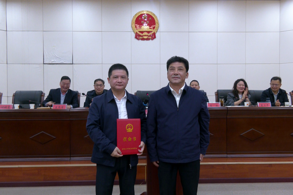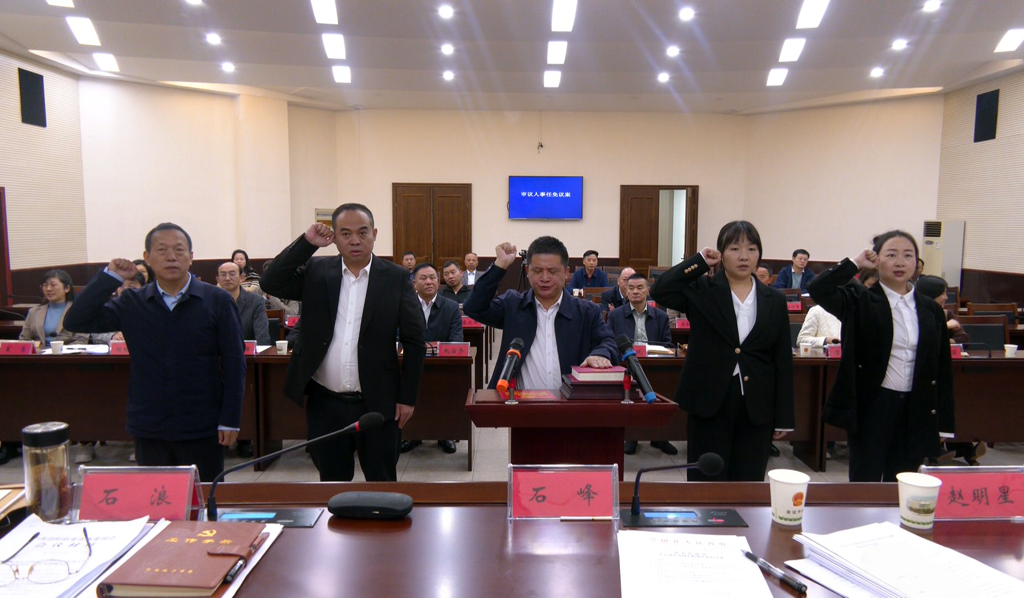石峰为新任命人员颁发了任命书,新任命人员向宪法庄严宣誓。