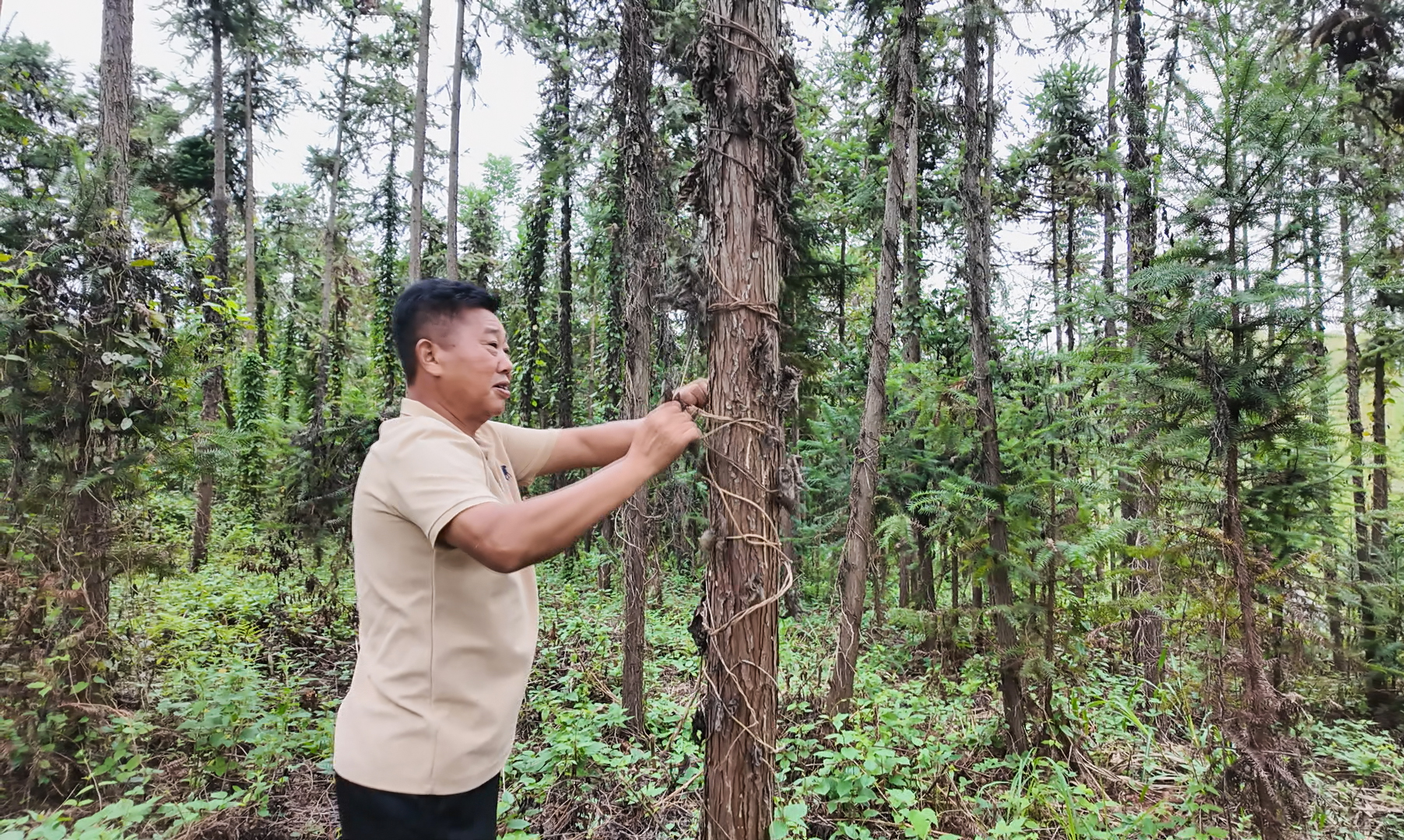 杉木材质轻韧、耐腐抗虫,是制作家具、甲板的优质材料。村民熊四平告诉记者,这一片杉树10年左右可达到采伐标准,按市场行情一亩3000元计算,是一笔可观的生态财富。为了在等待长期收益的同时,也能获得短期回报,目前林下已试种了黄精等中药材,这种“以短养长”的复合经营模式,为林木生长期间的收益提供了有效补充。与此同时,村民们除获得稳定的土地租金外,还参与造林、管护等工作,既盘活了“沉睡”的土地资源,又实现“土地流转得租金、林间务工得酬金”的双重收益。