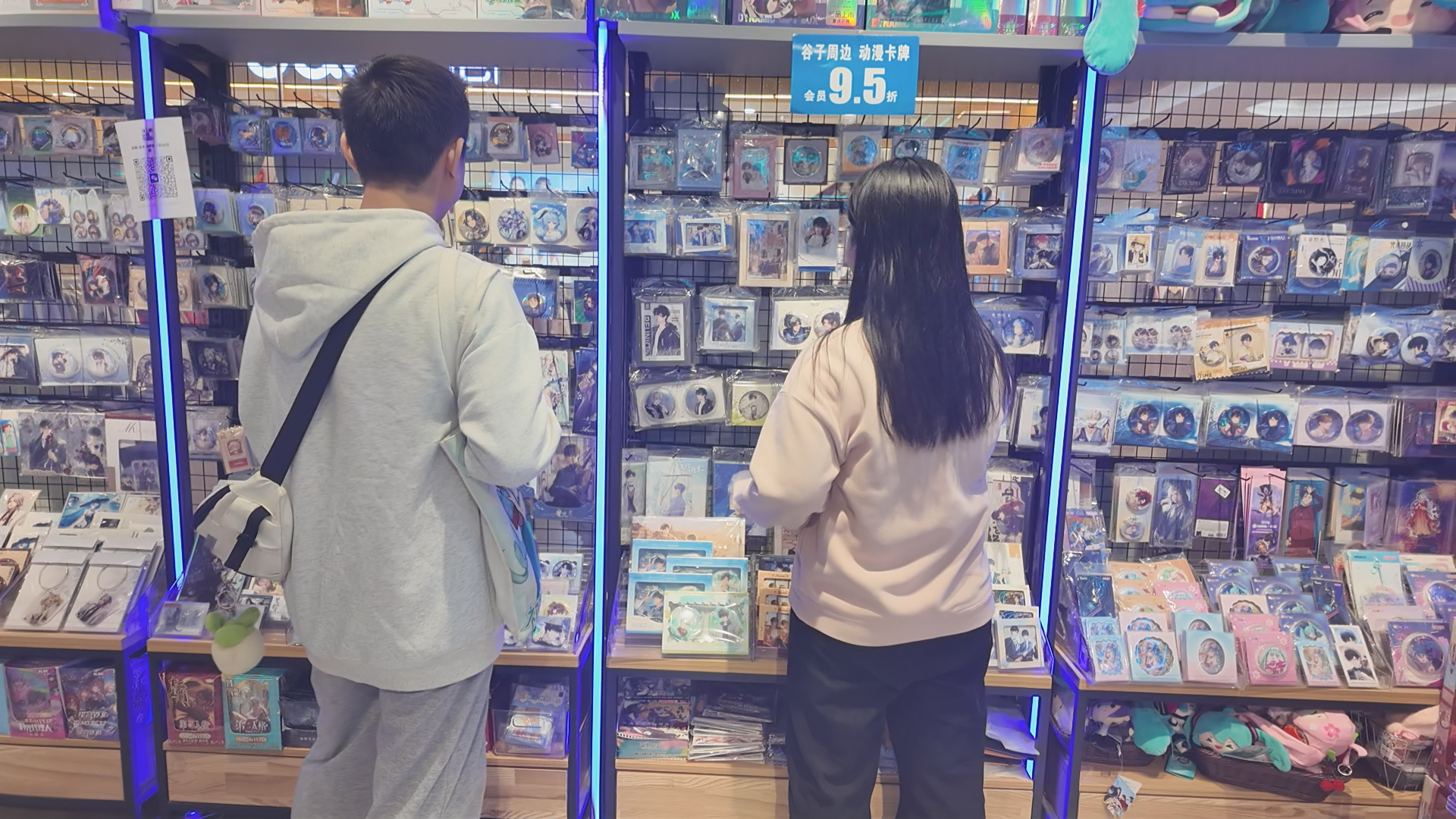 动漫游戏圈的“谷子”其实取自英文“Goods”的谐音,小到一枚掌心大的金属徽章、一张磨砂质感的角色立牌,大到包装精致的立体模型、玩偶背包,都被纳入这个范畴。