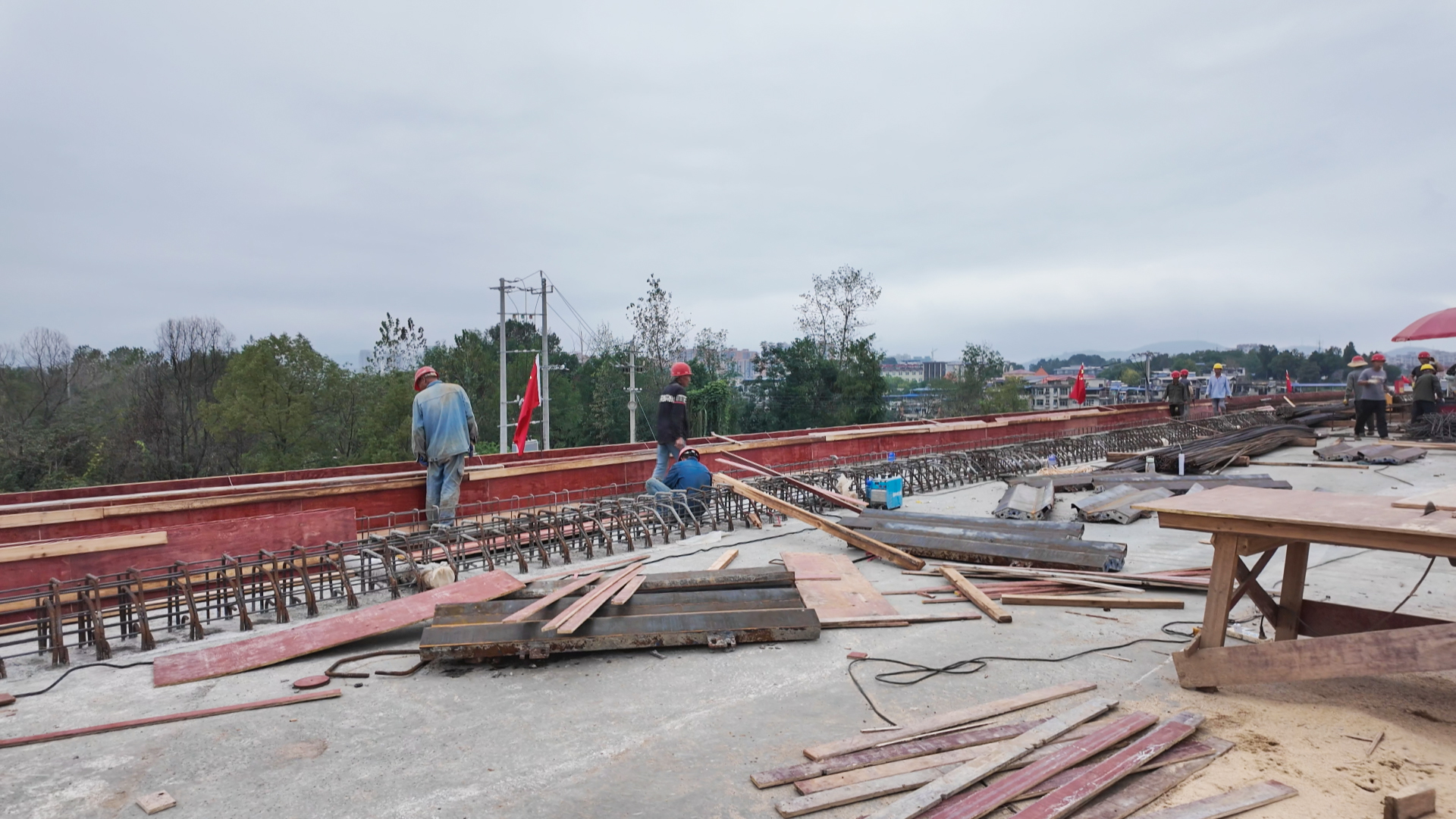 崇阳县交通运输局、县交投集团通远建设有限公司抢抓当前有利施工时机,对各施工环节严格把关,制定科学高效的施工计划。在确保工程质量与施工安全的前提下,推动大型机械与施工人员协同作战,有序开展后续T梁架设、桥面铺装及八号桥台浇筑工作。