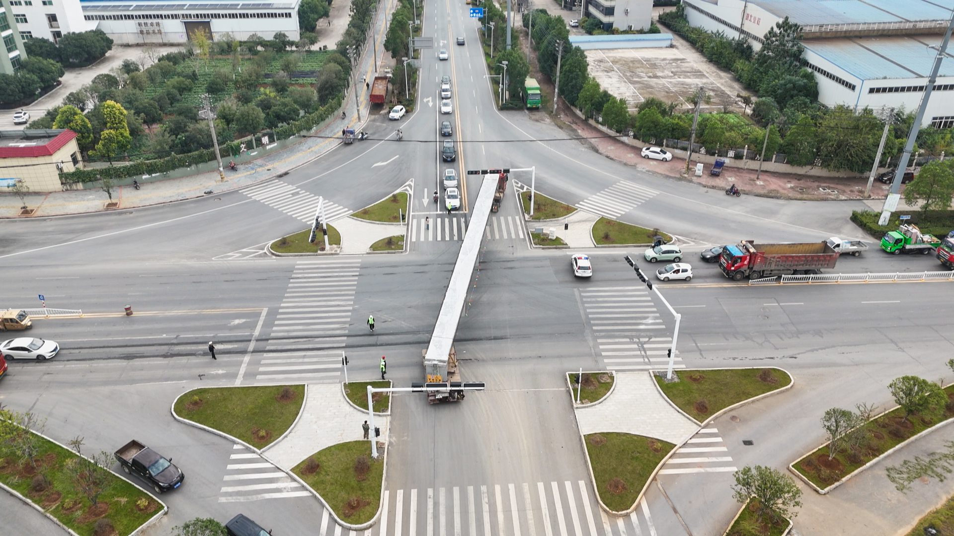 为解决大型构件运输难题,崇阳县交警部门提前规划运输路线,选择在午休时段派出警车为运输车辆开道,引导车辆匀速行驶。运输车辆沿天城大道、金城大道等路段行驶,途经3个红绿灯路口后抵达项目现场,全程11公里,各环节衔接顺畅,有效保障了运输安全。