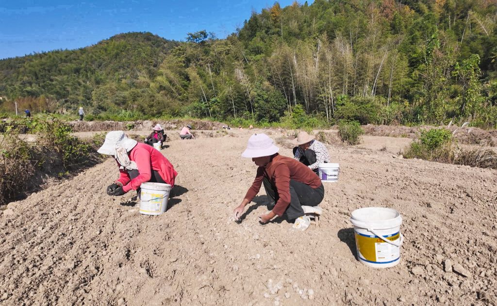 10月30日,记者走进石门村村集体经营的20亩浙贝母种植基地,精细化管理的细节随处可见:田垄被划分得横平竖直、整齐划一,村民们手持农具,在村干部的指导下进行播种作业,每一个播种坑的深度、间距都严格按照技术标准把控,这背后,正是村干部对种植成本与产出效率的精准考量。