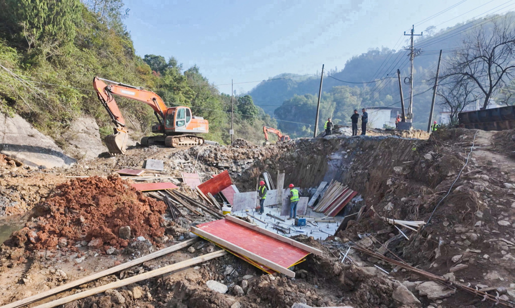 11月5日,在天城镇桃红村邹家桥施工现场,机械轰鸣,焊花飞溅,工人们忙碌而有序地穿梭其间。技术人员全神贯注地监测着桥墩的垂直度,工人们在进行钢筋绑扎作业,每一个节点都力求牢固可靠。这座采用2孔13米现浇普通钢筋混凝土简支空心板结构的新桥,已初具雏形,它跨越的不仅是一条沟壑,更是村民多年来的期盼。