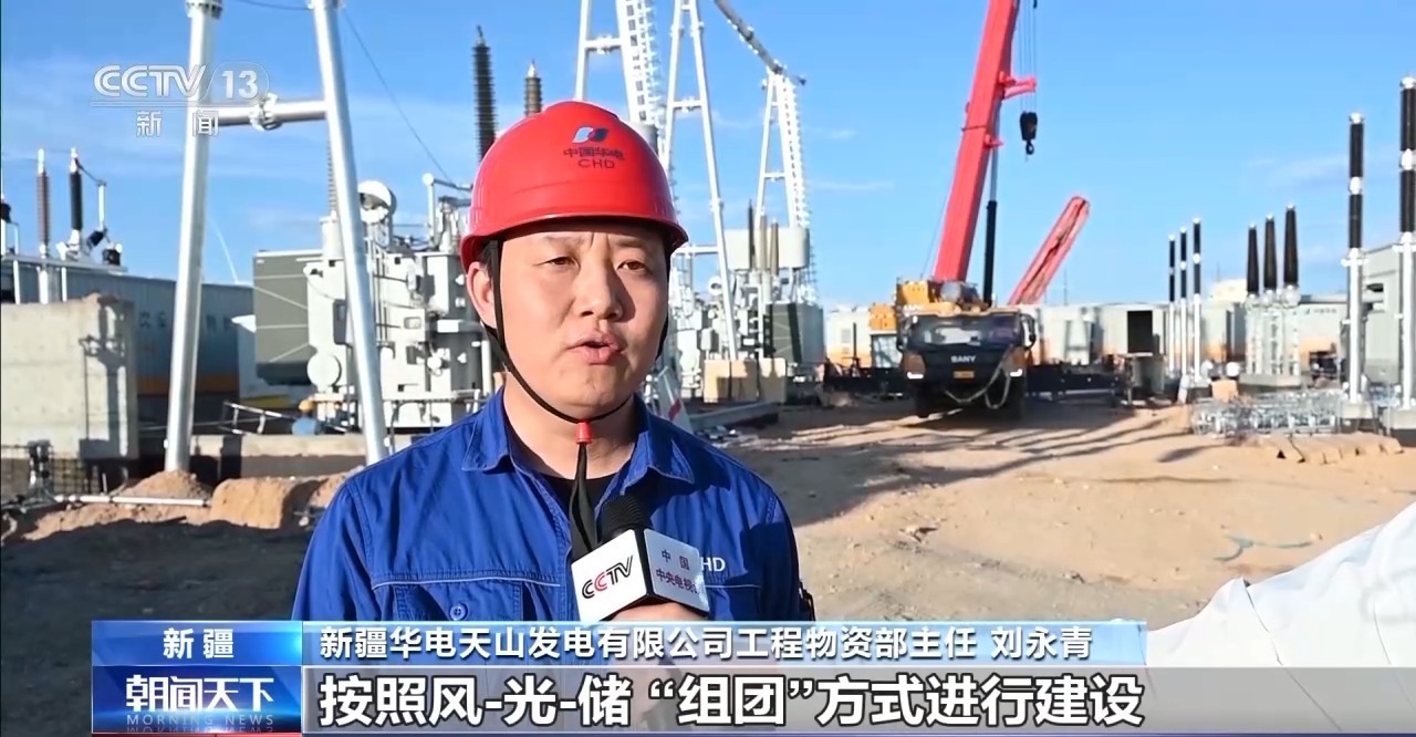 新疆华电天山发电有限公司工程物资部主任刘永青:项目采用风光同场布置,按风-光-储“组团”方式建设,同步建设8座220KV汇集站,是国内首个“风光火储”一体化运行控制新能源项目。