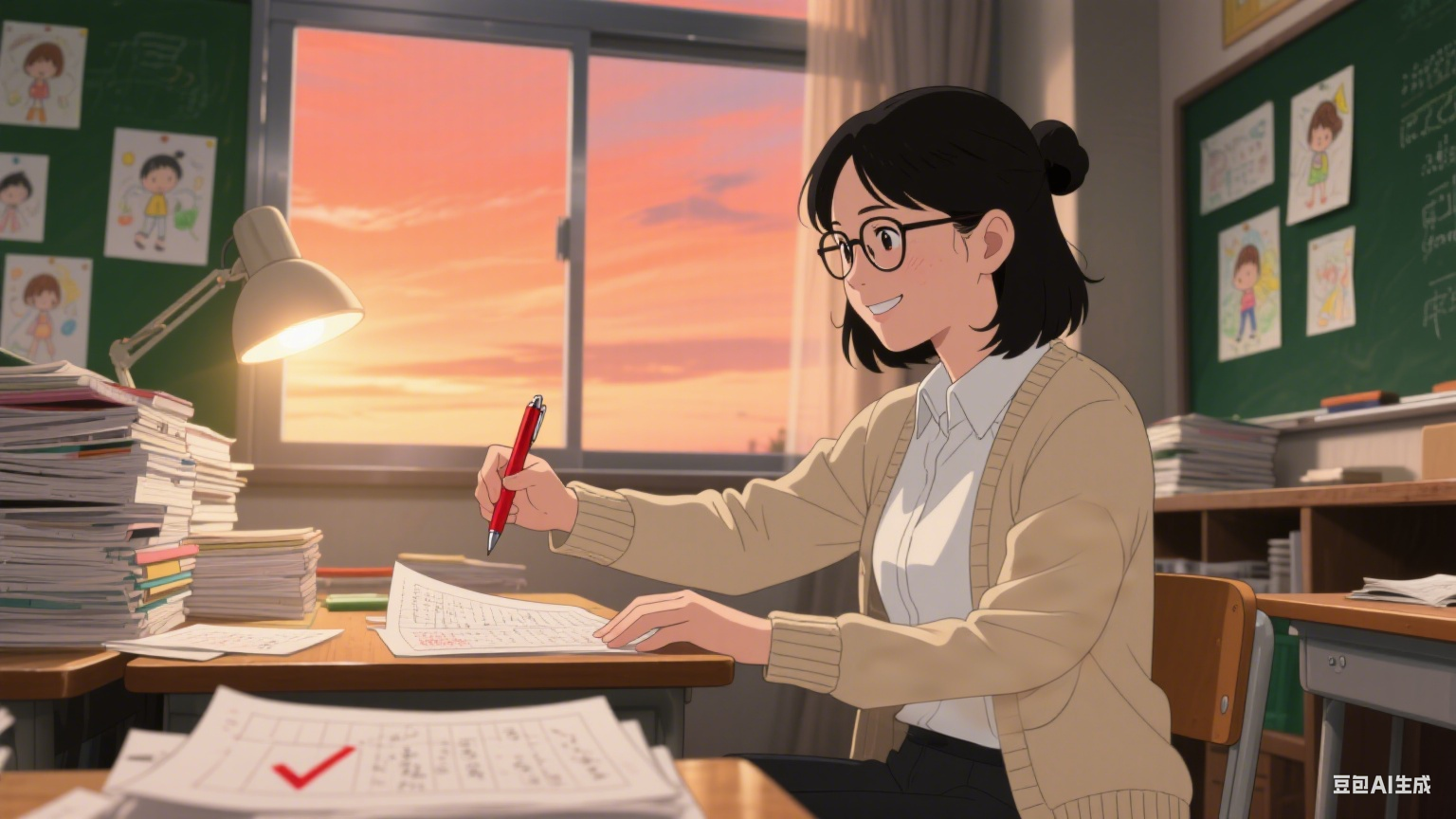 红笔芯换了一支又一支,在作业本上留下了对学生们饱含期待的批注;