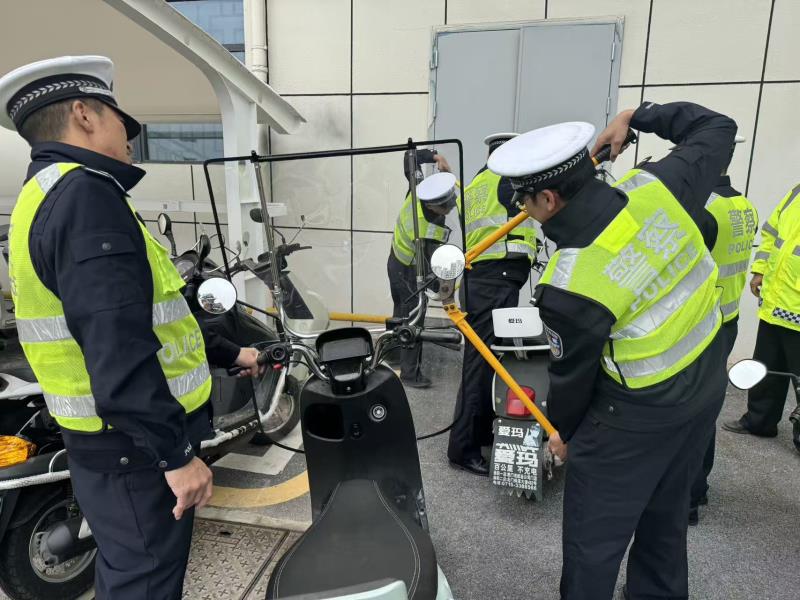 整治行动期间,交警对非法加装遮阳雨篷、遮阳伞的电动车和摩托车,做到发现一辆、纠查一起、拆除一顶,并耐心讲解加装遮阳雨篷、遮阳伞的危害性及严重性,与驾驶人一同将遮阳雨篷、遮阳伞当场拆除,消除事故隐患,确保交通安全。此次行动共拆除电动车遮雨篷(遮阳伞)50顶。